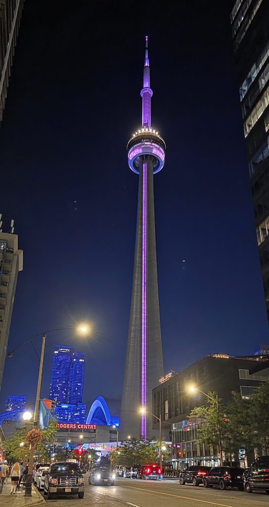 You might notice, by its absence that we have not yet mentioned Toronto’s most famous and perhaps most iconic attraction which is high on everyone’s list. The CN Tower. As Canada’s national symbol, this tower was built in February 1973 and is the tallest observation tower in the western hemisphere. It was built, as was much of Toronto, on reclaimed land from Lake Ontario, thanks to a treaty with First Nation indigenous people who called this place home. The land here was an integral part of their cultural heritage and meeting place. The Tower opened for the first time in June 1976.