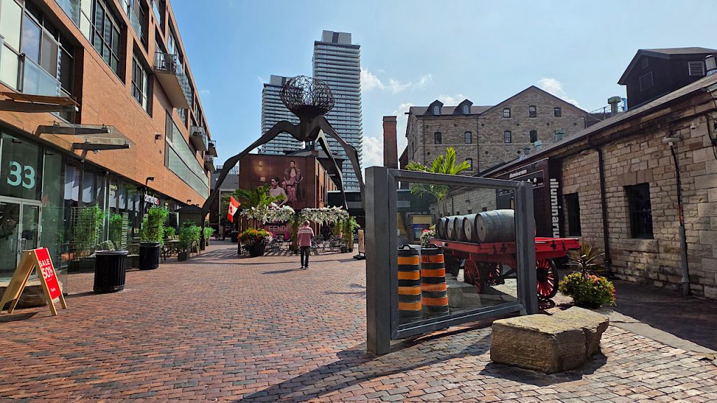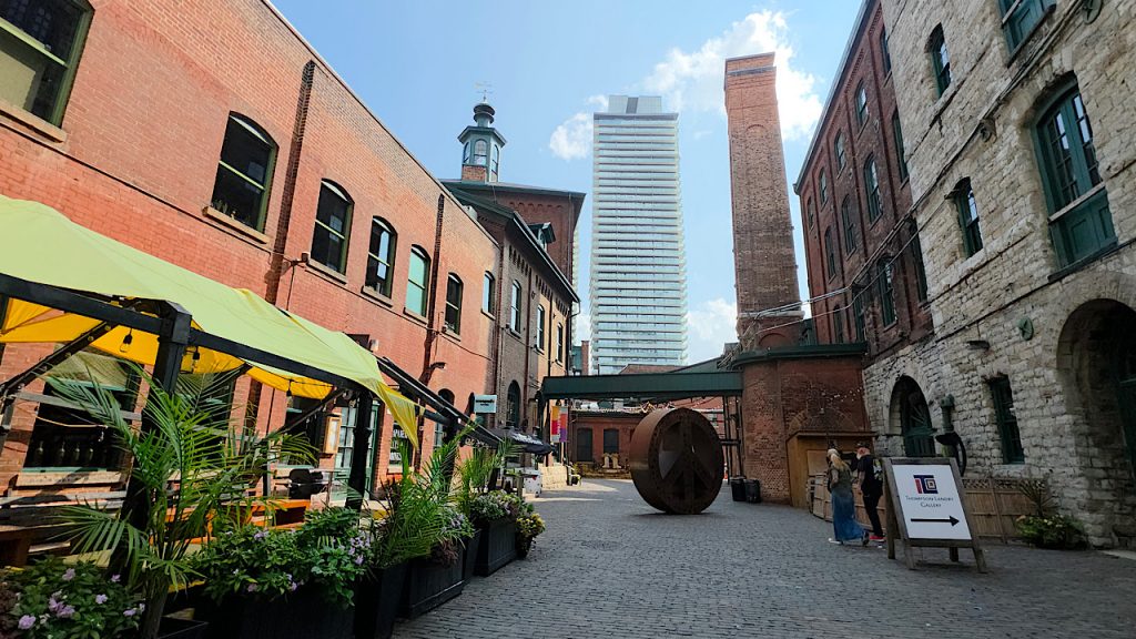 Our next station stop is about a 30 minute walk through Toronto’s old town sector to reach the Distillery District. Whilst on the face of it, this is a swanky area of the city with boutique shops and restaurants, there is history behind the commercialism. And this is the reason you must come here. Imagine a time when the transport was a horse-drawn carriage, windmill powered mills and a shipyard full of ships waiting for their cargo. A Victorian age where the industrial architecture was purposeful and practical, so unlike the characterful use of the buildings today.