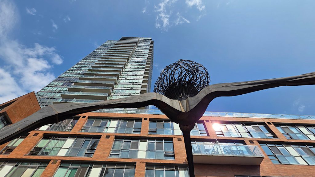 A sight not to be missed the other side of the fountain is the Gooderham ‘Flatiron’ Building. Whilst the building itself wasn’t open when we visited, the mural on the outside is vision enough. The red brick triangular building was designed for George Gooderham who was the owner of Toronto’s largest distillery in 1892. It is one of Toronto’s most iconic old buildings and well worth the diversion.
