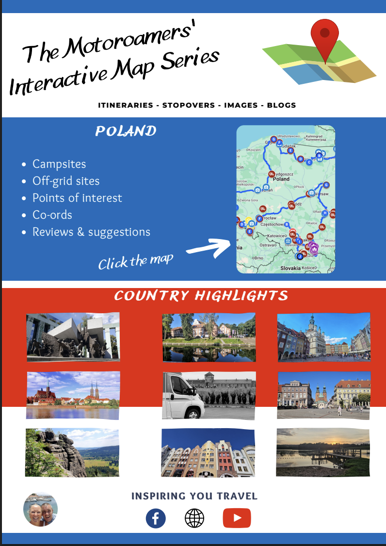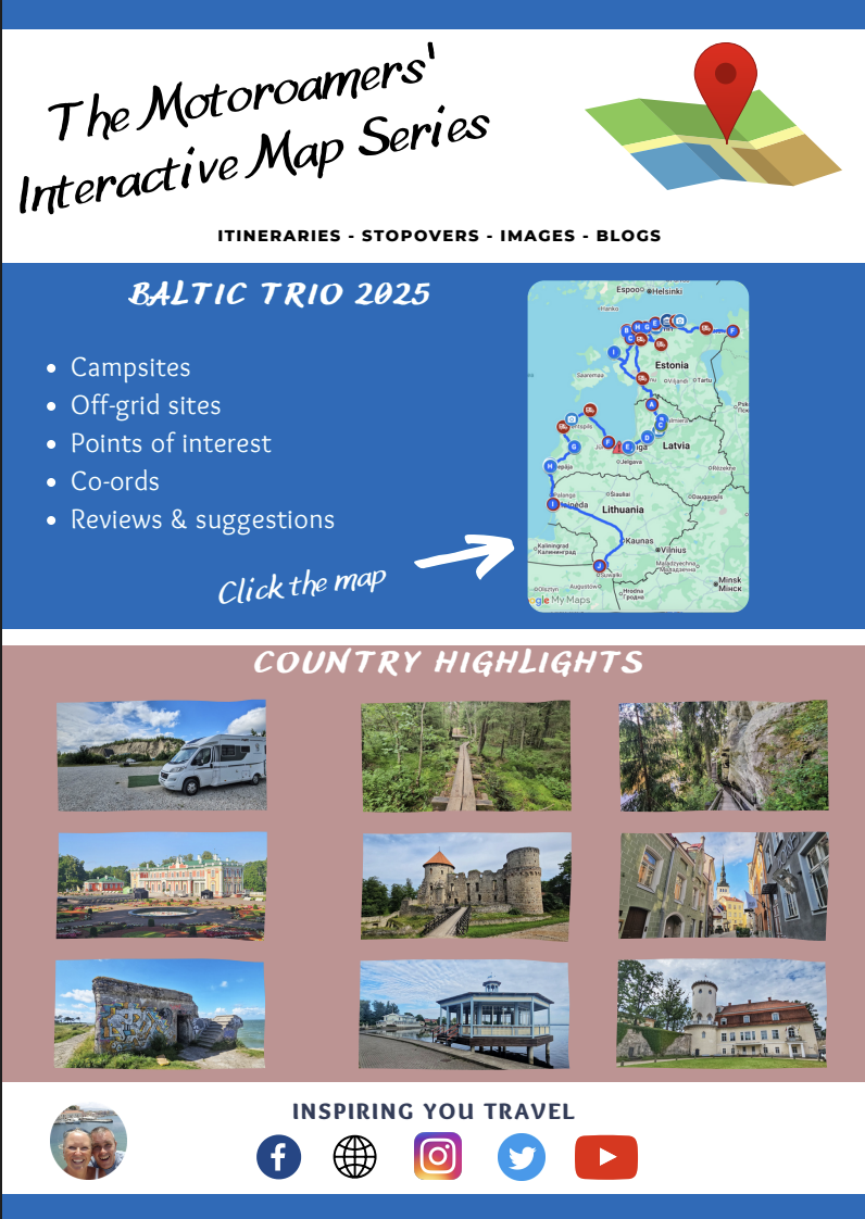 We have been collating those journeys and recording our Google map routes in our blogs. To make access to these maps easier, we have created a free to download PDF Card for each country meaning you no longer need to hunt through our blogs. Now you can come straight to this part of our website and choose the Interactive Map card for your chosen destination.